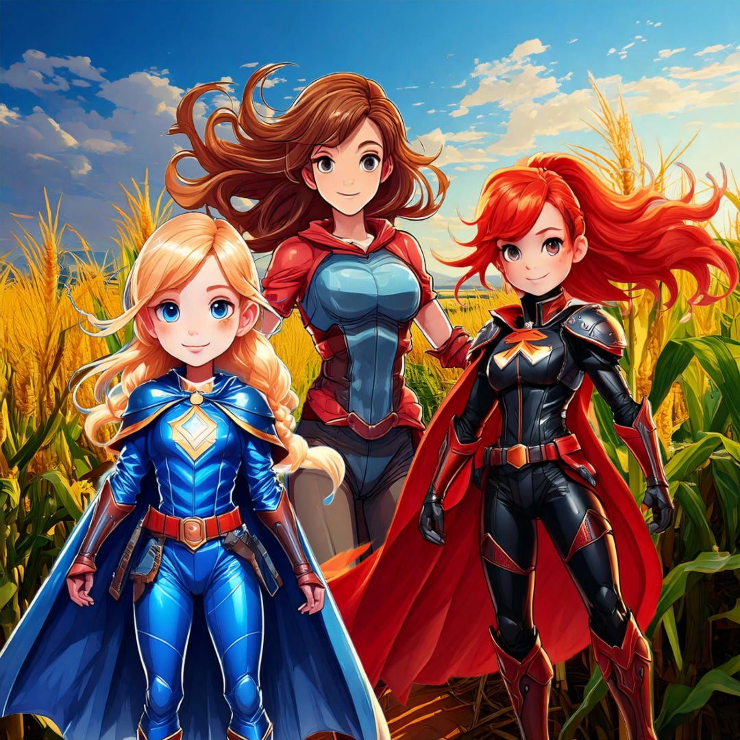 The sun beat down on the three girls as they pushed their way through their family’s cornfield. Margaret sped ahead, her flaming red ponytail flying behind her beneath the blue sky.